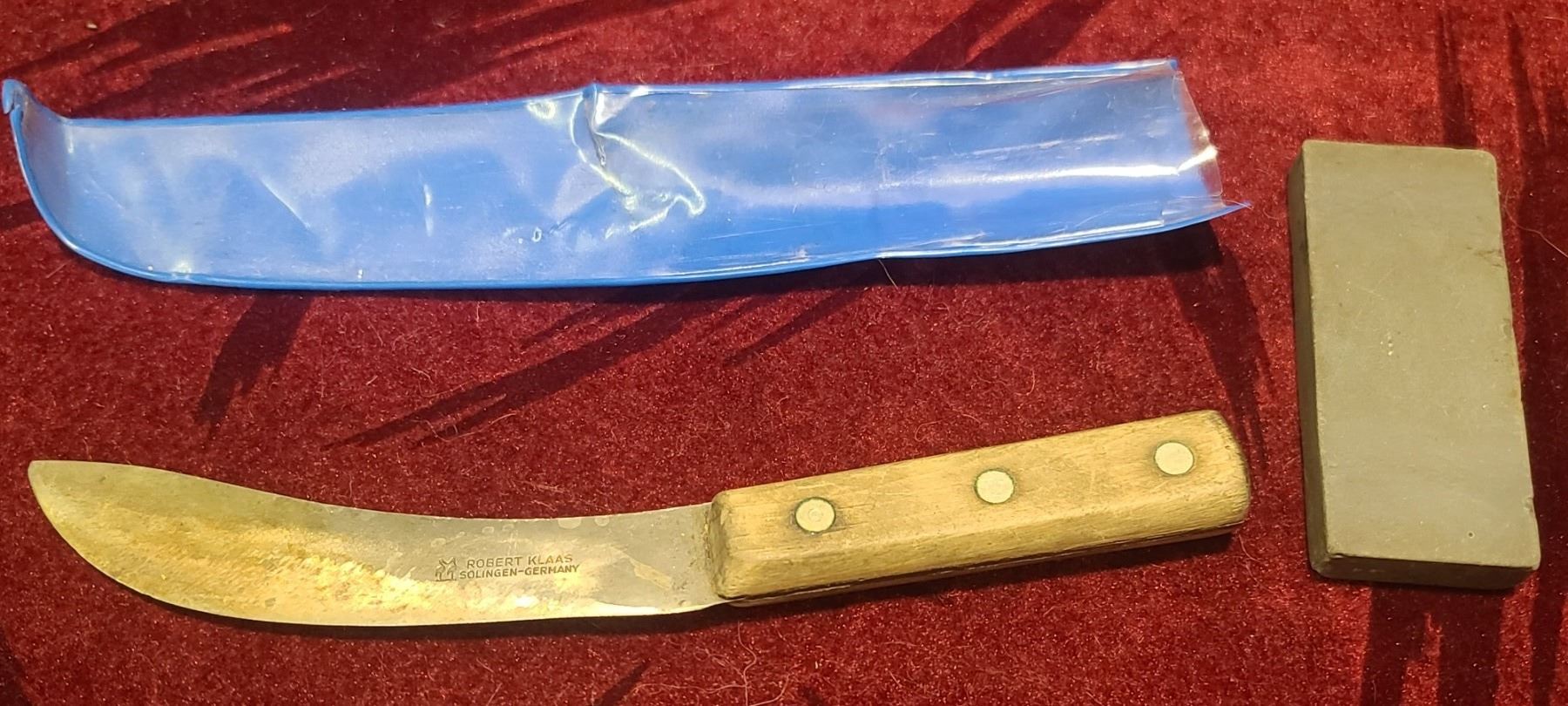 ROBERT KLASS BUTCHE/SKINNING KNIFE MADE IN SOLINGEN-ERMANY AND SHARPENING STTONE