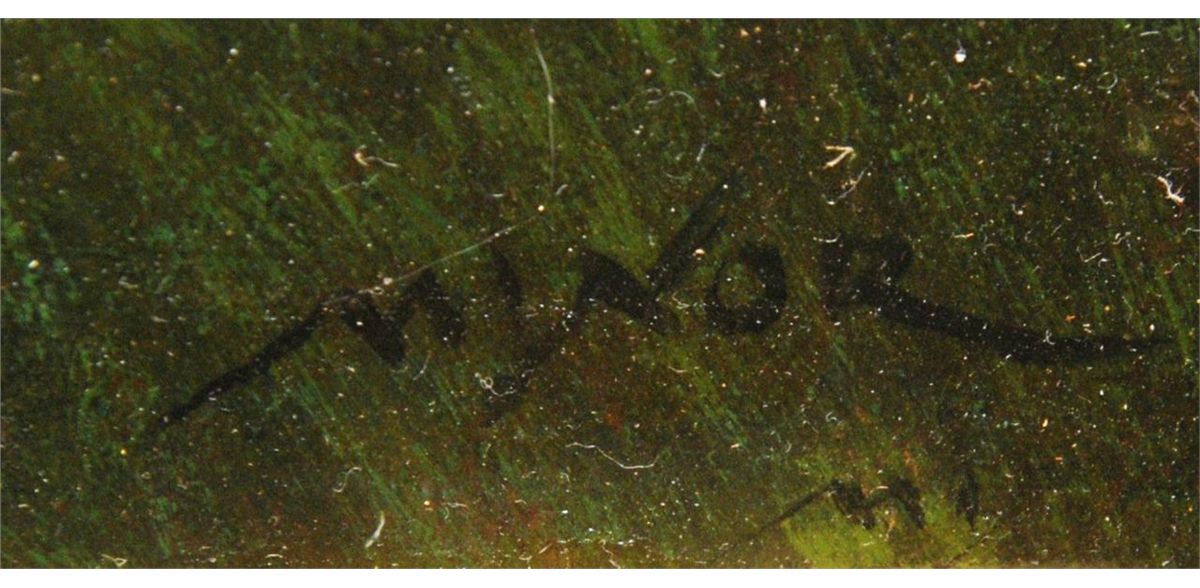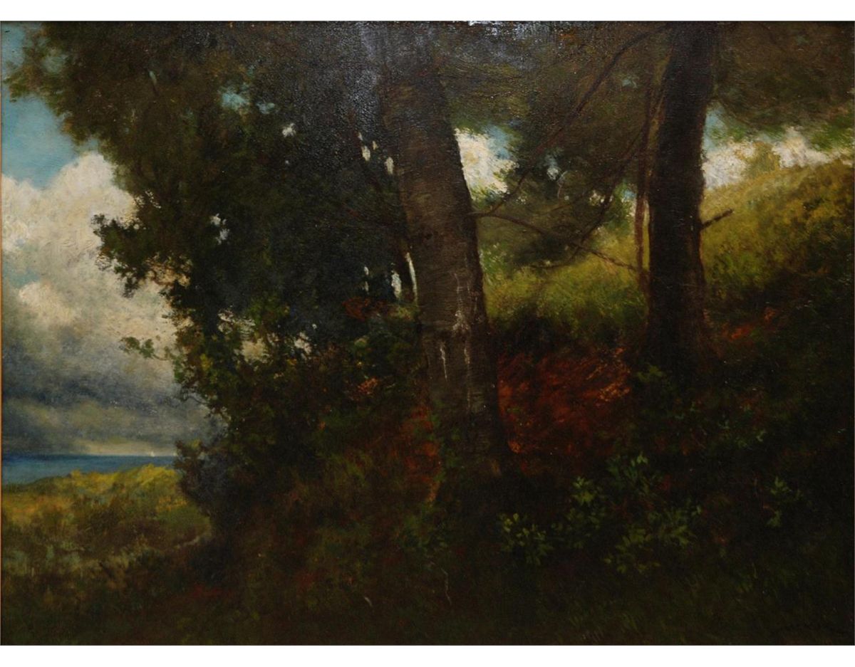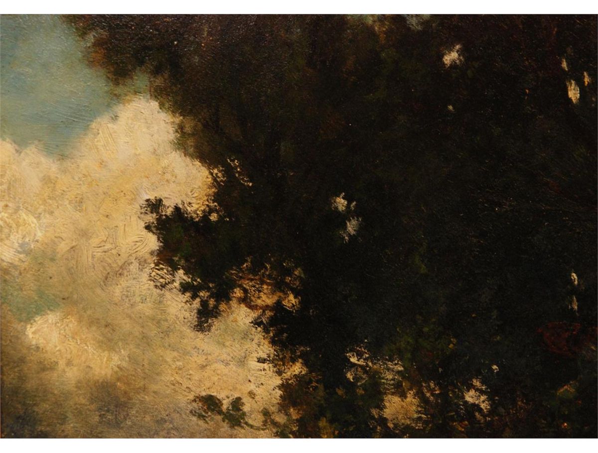 Robert Crannell Minor Senior (AMERICA, 1839 - 1904) oil painting on panel depicting a landscape scene. Signed to lower right. Mounted in original gilded wooden frame. Measures 18" height x 24" width + 5 1/2" frame (45.7cm x 60.9cm + 13.9cm).