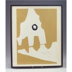 ROBERT MOTHERWELL (1915-1991) screenprint in colors with collage on Mohawk Superfine, 1964, from the "Ten Works by Ten Painters" series, total edition of 550, for the Wadsworth Atheneum Museum, Hartford, CT, in mustard, black and white, framed. Unsigned. Image: 22" x 16" $800 - 1,200