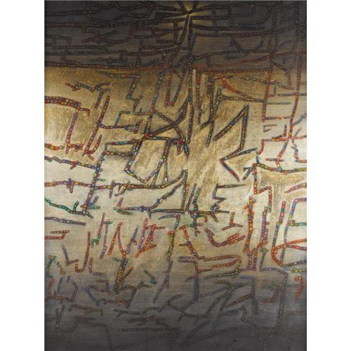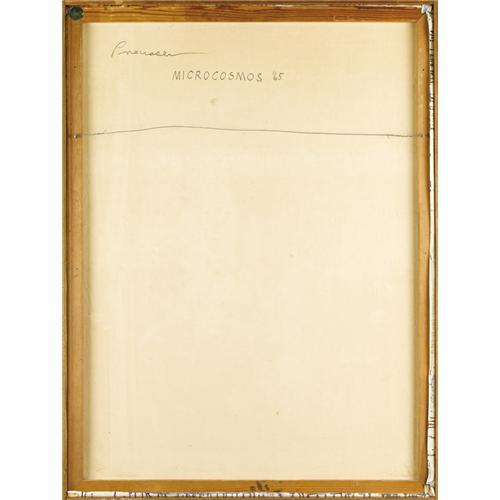 <B>ROBERT PREUSSER (1919-1996)</B></I><BR><I>Microcosmos,</B></I> 1965<BR>Oil on canvas<BR>36in. x 48in.<BR>Signed lower right<BR>Signed, dated, and titled verso<BR><BR>Bela Bartok's composition for piano Mikrokosmos consists of 153 progressive pieces in six volumes written between 1926 and 1939. While it may be pure coincidence that Bartok also wrote a series of Improvisation pieces, there is no doubt that Preusser drew inspiration from classical and jazz music.<BR><BR>The term Microcosmos from the Greek means small world. This painting constitutes its own small world, completely self contained, its own world, its own universe.<BR><BR>Provenance:<BR>Estate of Robert Preusser<BR><BR><BR><BR><b>Shipping:</b> Requires 3rd Party Shipping (<a target="_blank" href="http://www.heritageauctions.com/common/shipping.php">view shipping information</a>)