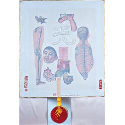 Xuan paper, tissue, wood blocks, paper collage, ink and silk ribbon