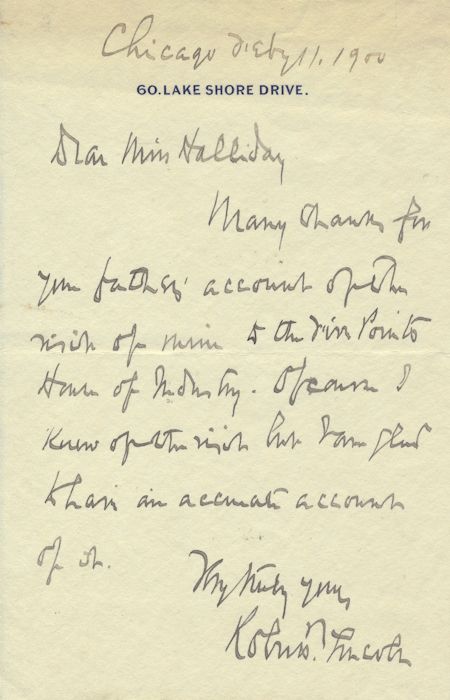 (1843- 1926) American lawyer and son of Abraham Lincoln, served with Grant and was Secretary of War. A.L.S. 1p. 8vo., Chicago, Feb. 11, 1900, to Miss Halliday, thanking her for an account of a time at Five Points. Very good.
