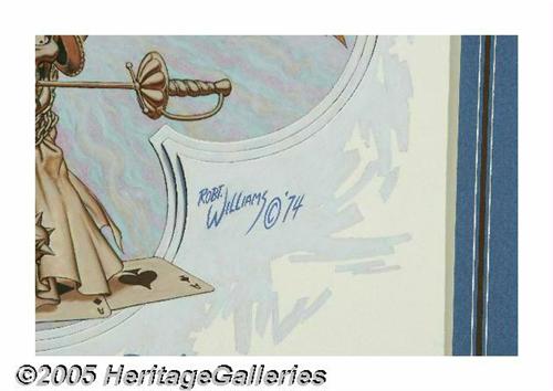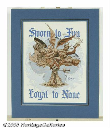 <B>ROBERT WILLIAMS (American b.1943)</B></I><BR>Sworn to Fun, Loyal to None, 1974<BR>Liquitex on illustration board<BR>16.75in. x 13in.<BR>Signed lower right<BR>Inscribed on reverse 'Robert Williams, 8039 Teesdale Av., No. Hollywood, CA 91605', backing inscribed '"Sworn to Fun- Loyal to None" T-Shirt design - Roach Studios, Ohio, 1974, Liquitex on illustration board'<BR><BR>Condition Report: Slight yellowing of board around edges under mat, otherwise very good condition<BR>