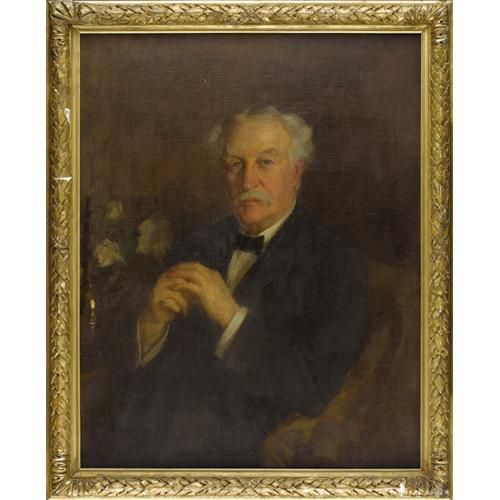 <B>ROBERT WILTON LOCKWOOD</B></I> (American 1861-1914)<BR><I>Portrait Of A Gentleman</B></I><BR>Oil on canvas<BR>38 x 30 inches (96.5 x 76.2 cm)<BR>Unsigned<BR>Label verso: <I>Goster Bros. / 4 Park Sq. / Boston / Pictures and Frames</B></I><BR><BR>This half-length likeness of a gentleman is a fine example of Lockwood's sensitive, painterly manner, which earned him distinction both as a portraitist and as an accomplished flower painter. The Boston Museum of Fine Arts owns one of Lockwood's finest likenesses-his 1891 portrait of John La Farge, the American painter and stained glass artist with whom he trained and served as a longtime assistant. Born in Wilton, Connecticut, Lockwood studied in Paris following his initial tutelage under La Farge. Once he became an established painter, he became a member of the Society of American Artists (1898), of the Copley Society, Boston, and an associate of the National Academy of Design in New York. His most notable sitters were President Grover Cleveland and Justice Oliver Wendell Holmes, Jr.<BR><BR><BR><BR><b>Shipping:</b> Requires 3rd Party Shipping (<a target="_blank" href="http://www.heritageauctions.com/common/shipping.php">view shipping information</a>)