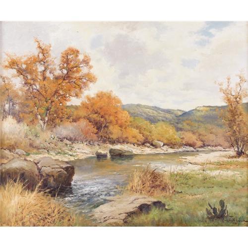 <B>ROBERT WOOD (1889-1979)</B></I><BR><I>Texas Wonderland,</B></I> 1953<BR>Oil on canvas<BR>25in. x 30in.<BR>Signed and dated lower right<BR>Titled verso<BR><BR>Although Robert Wood moved to California in 1941, he continued to paint Hill Country landscapes well into his later years.<BR><BR> <B>Condition Report:</B> Excellent condition. Period frame in excellent condition.<BR><BR><b>Shipping:</b> Requires 3rd Party Shipping (<a target="_blank" href="http://www.heritageauctions.com/common/shipping.php">view shipping information</a>)