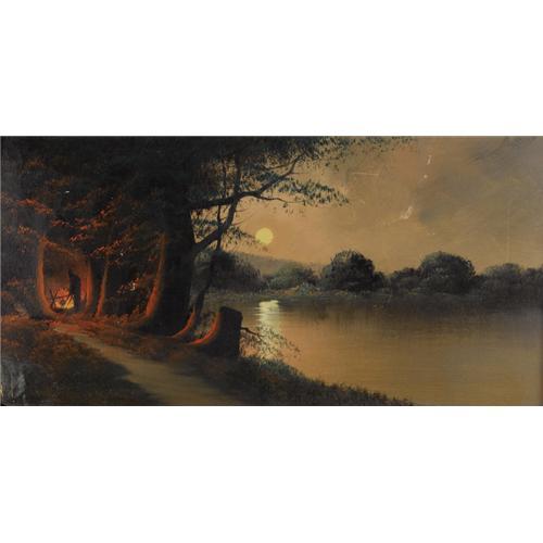 <B>ROBERT WOOD (1889-1979)</B></I><BR>Untitled Buckeye Painting, late 1920s<BR>Oil on artist board<BR>12in. x 24in.<BR>Unsigned, accompanied by letter of authenticity from Violet Sigoloff (Robert Wood's daughter)<BR><BR>As described in the previous lot, this smaller "Buckeye" painting was also given to Sue Wisnoski's parents by Robert Wood. It, too, was unsigned and brought to the Sigoloff Gallery for authentication in 1976. In a letter accompanying the appraisal, Robert Wood's daughter identifies the location of the painting as the Tennessee River.<BR><BR>Provenance:<BR>Acquired by descent from the artist by the present owner<BR><BR> <B>Condition Report:</B> Good original condition without restorations or inpainting. Minor scratches and a small loss to the artist board in the lower left corner. Artist board is slightly warped. Period frame in fair condition.<BR><BR><BR><BR><b>Shipping:</b> Requires 3rd Party Shipping (<a target="_blank" href="http://www.heritageauctions.com/common/shipping.php">view shipping information</a>)