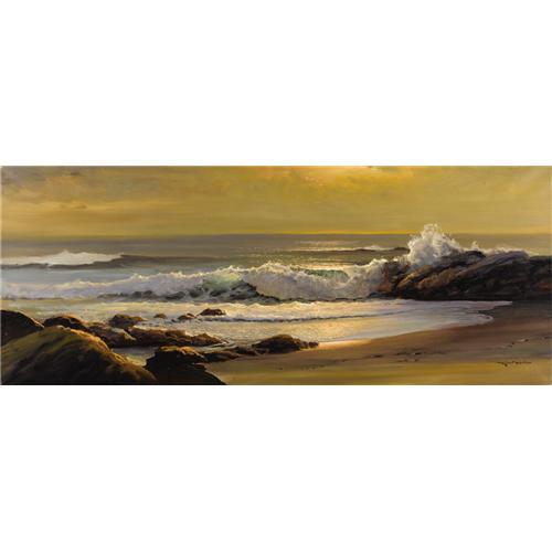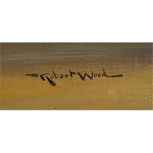 <B>ROBERT WOOD</B></I> (American 1889-1979)<BR><I>Laguna Beach</B></I><BR>Oil on canvas<BR>23-3/4 x 59 inches (60.3 x 149.9 cm)<BR>Signed lower right: <I>Robert Wood</B></I><BR>Stamped verso: <I>REPRODUCTION RIGHTS RESERVED BY THE ARTIST/Painted by Robert Wood</B></I><BR><BR> <B>Condition Report:</B> Minor abrasion and paint loss along painting edge<BR><BR><b>Shipping:</b> Requires 3rd Party Shipping (<a target="_blank" href="http://www.heritageauctions.com/common/shipping.php">view shipping information</a>)
