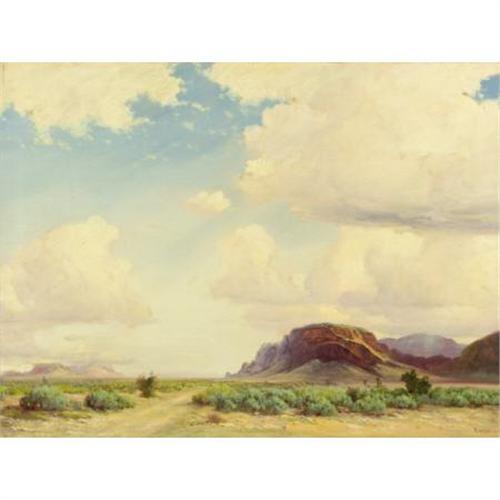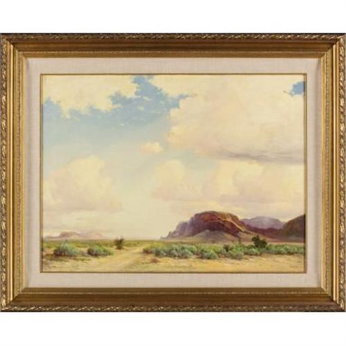 <B>ROBERT WOOD (American, 1889-1979)</B></I><BR><I>Southwestern Landscape</B></I><BR>Oil on canvas<BR>24 x 32 inches (61.0 x 81.3 cm)<BR>Signed lower right:<I> Robt. Wood</B></I><BR> <B>Condition Report:</B> Original canvas, overall good condition.<BR><BR><b>Shipping:</b> Requires 3rd Party Shipping (<a target="_blank" href="http://www.heritageauctions.com/common/shipping.php">view shipping information</a>)