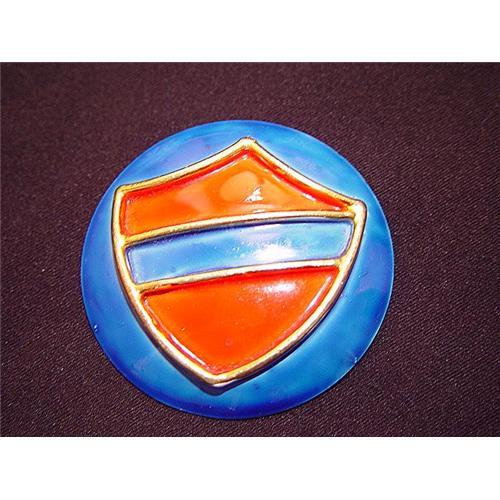 Here is a vintage lovely red, blue and gold enamel signed Original by Robert emblem brooch. It is about 2 1/4 by 2 1/4 inches in width and height. The enamel appears in excellent condition as does the brooch. It has a very strong clasp in the back, it also has a area so it could be used as a pendant on a chain. Very nice brooch.