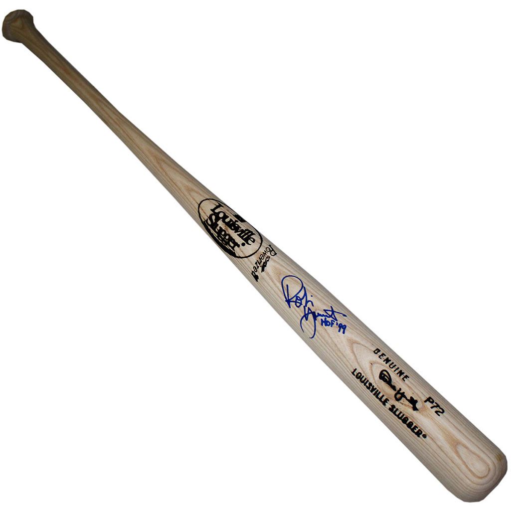 ROBIN YOUNT MILWAUKEE BREWERS AUTOGRAPHED LOUISVILLE SL **|**|** Brewers' Great has personally hand-signed this Louisville Slugger Model Bat and inscribed it "HOF 99"-Also known as "The Kid" or "Rockin' Robin" Robin Yount spent his whole twenty year career with the Milwaukee Brewers. Not only was he a productive hitter he also excelled in playing two of the most difficult positions in baseball- Shortstop and Center field. Yount in the 1980s had more hits than any other player in that decade and ultimately finished his career with 3,142 hits making him a member of the 3,000 hits club. Robin Yout went on to win 2 MVP awards in both positions as Shortstop and Center fielder. In his 1982 MVP season he led the Brewers to the World Series. He was a three time All- Star(1980, 1982, 1983), a two time MVP(1982, 1989), Gold Glove Award winner(1982), and a three time Silver Slugger Award(1980, 1982, 1989). This Robin Yount autograph is guaranteed authentic