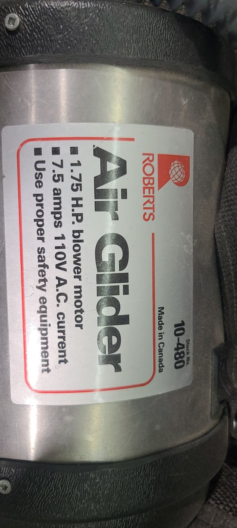 ROBRTS AIR GLIDER 1.75HP BLOWER MOTOR, 7.5 AMPS 110 A.C. CURRENT