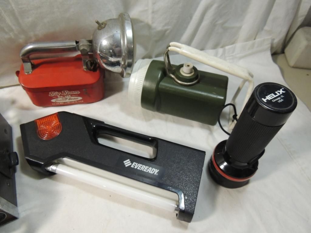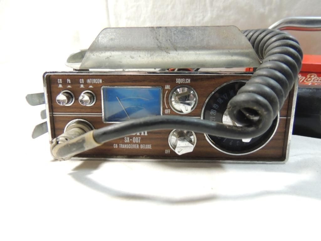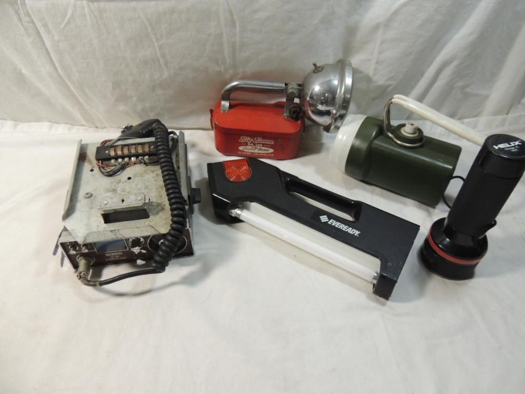 ROBYN CB RADIO & 4 VINTAGE FLASHLIGHTS. LARGE FLASHLIGHTS AS SHOWN SEE PHOTO FOR MORE DETAILS.
