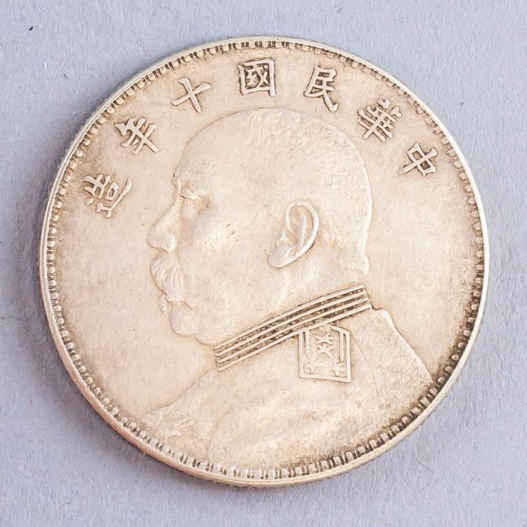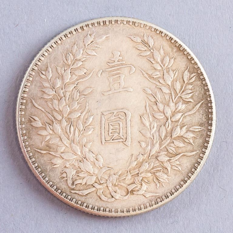 Republic of China coin. Obverse: Bust of Yuan Shikai facing left. ZHONG HUA MIN GUO SHI NIAN ZAO. Reverse: Wreath with characters. YI YUAN. 26.53 grams (coin). 34 grams (including case). Density: 10.09.