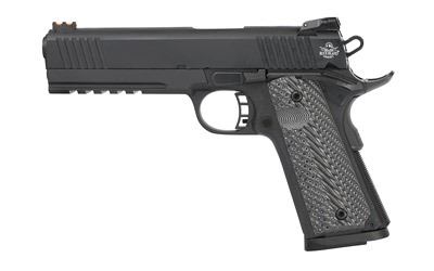 Armscor, Rock Island, Full Size Pistol, 45ACP, 5", Steel Frame, Parkerized Finish, G10 Grips, Adjustable Sights, Ambidextrous, 8Rd, Full Dust Cover Picatinny Rail, Extended Beaver Tail, Ambidextrous Safety, Full Length Guide Rod, with Fired Case