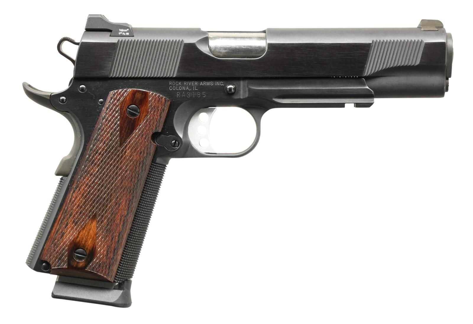 Cal. 45 ACP. S# RA3185. Bbl. 5". Trijicon three dot night sights. Blued finish. Front & rear slide serrations. Extended right hand safety. Extended beavertail grip safety. Frame has accessory rail & checkered front strap. Checkered rosewood grips. MAGS: 1-8 rd. marked "ELITE". UNATTACHED ACCESSORIES: w/box. CONDITION: all aspects rate very good plus or better w/ some light handling wear. PROVENANCE: The Collection of Gun Sport Ltd owned by Jon R. Thomas. (23-4010/MJC). MODERN. $1000-1500.