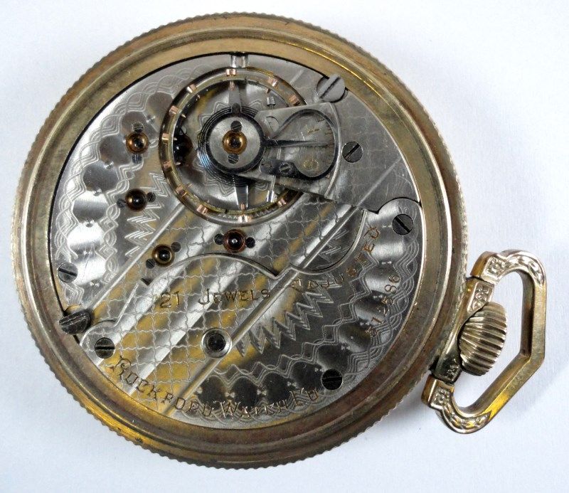EST $500- $600, GRADE 910, 18 SIZE, 21 JEWELS, SERIAL #512586, BEAUTIFUL WORKING CONDITION, VERY SMALL HAIRLINE CRACK.
