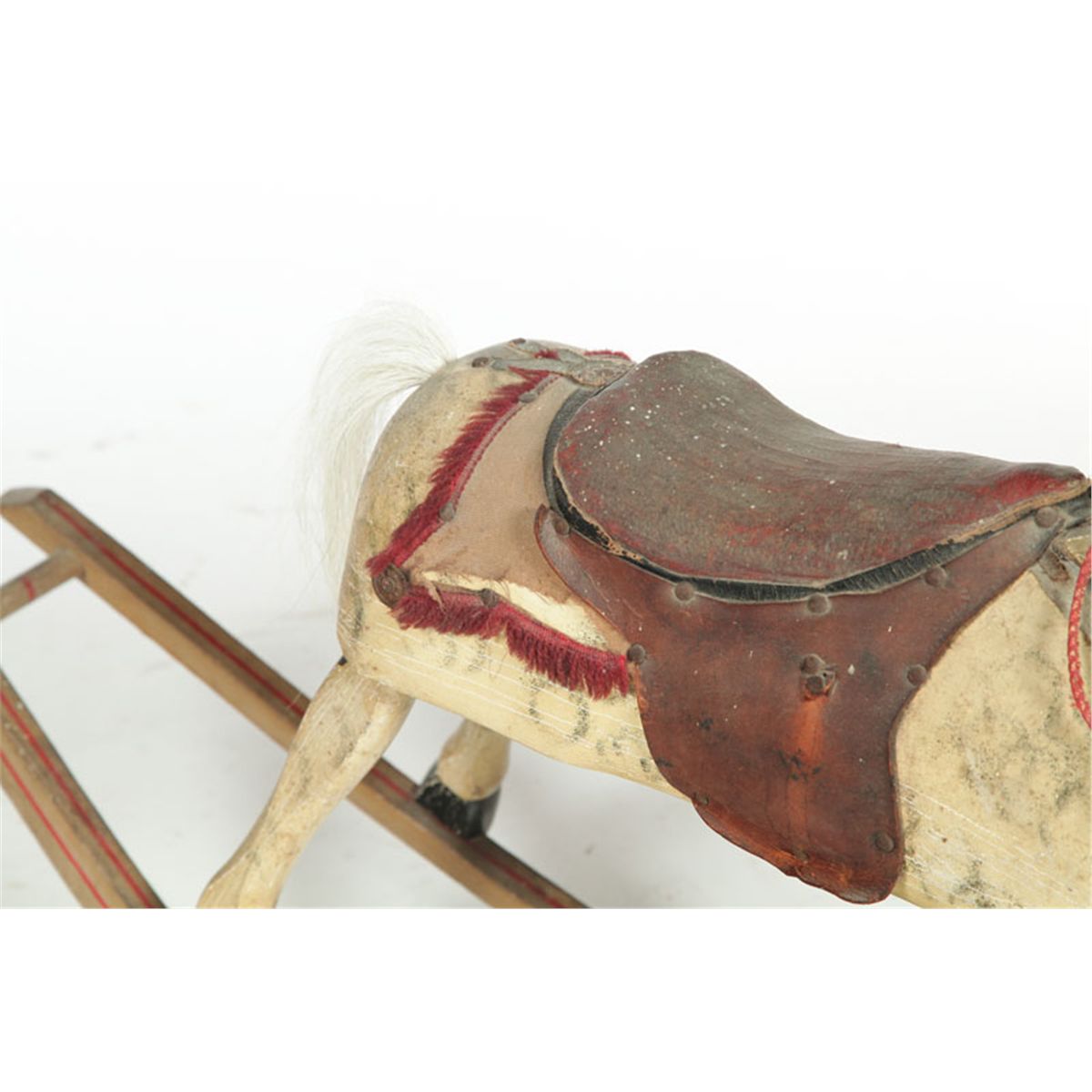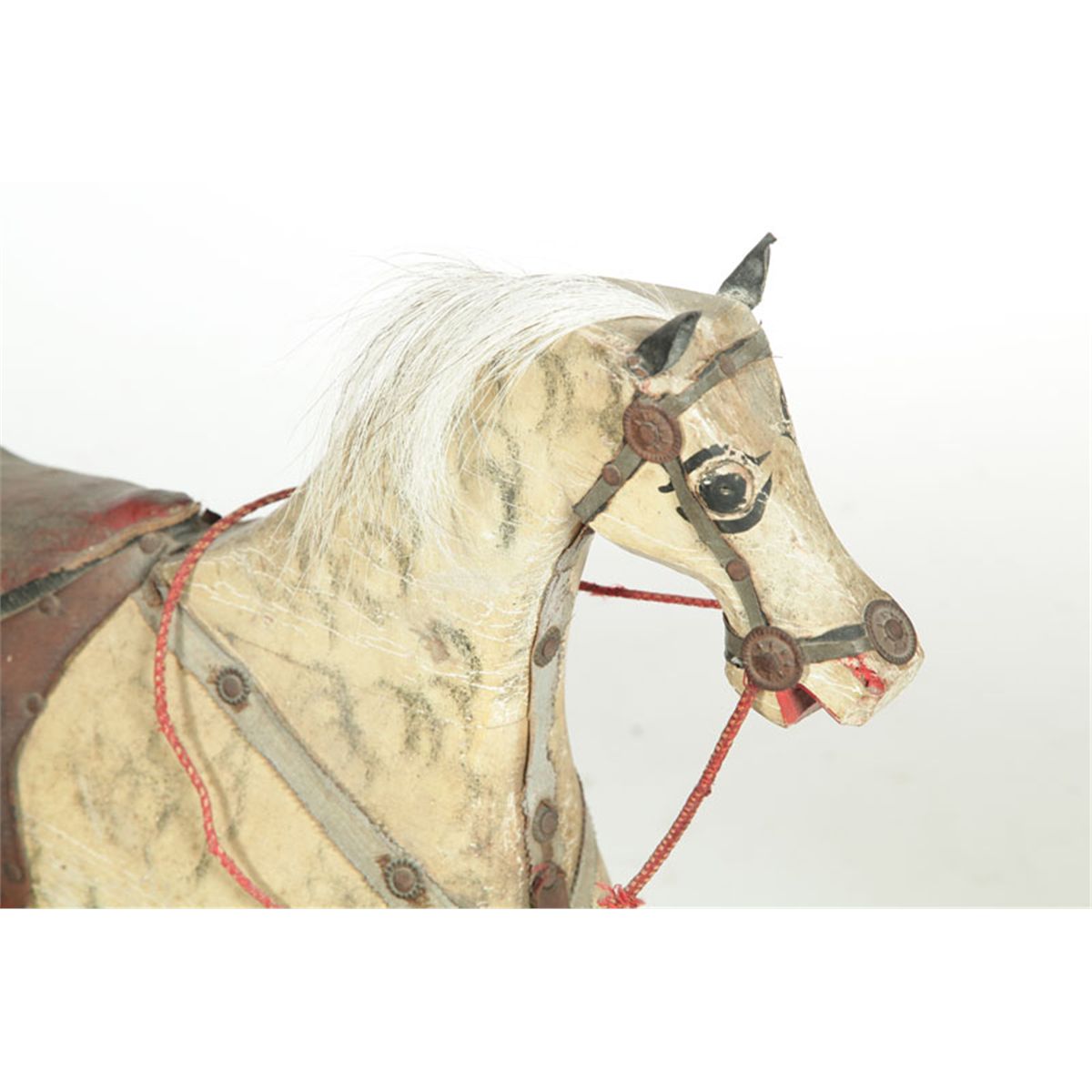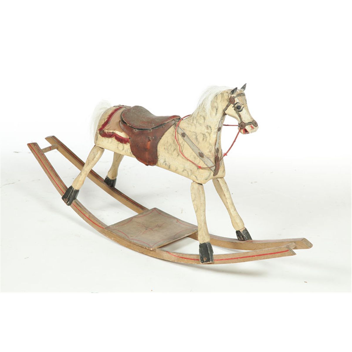 American, late 19th century, mixed woods. Leather saddle, horsehair tail and mane, and original paint decoration. 24"h. 48"l. Ex Frank Gaglio (New York).