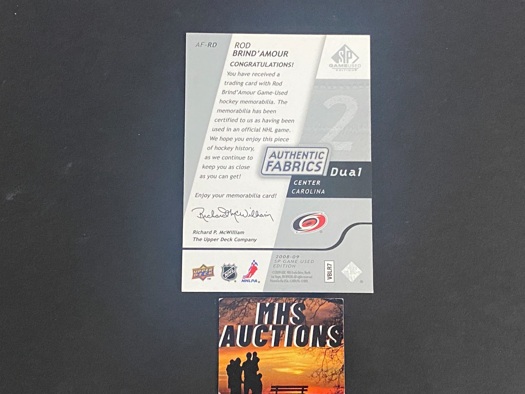 ROD BRIND'AMOUR 2008-09 SP GAME USED DUAL JERSEY HOCKEY CARD