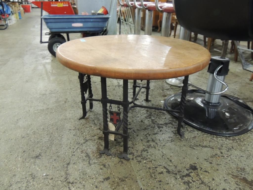 ROD IRON TEMPLAR TABLE WITH SOLID 2" THICK OAK TOP. AS SHOWN. SEE PHOTO FOR MORE DETAILS.
