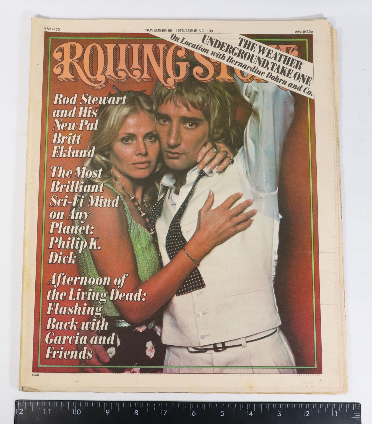 RARE ORIGINAL ROLLING STONE MAGAZINE ISSUED NOVEMBER 6, 1975. THE MAGAZINE HAS A GREAT MULTIPAGE ARTICLE ON ROD STEWART & BRITT EKLAND. PLUS AN ARTICLE ON THE GRATEFUL DEAD.