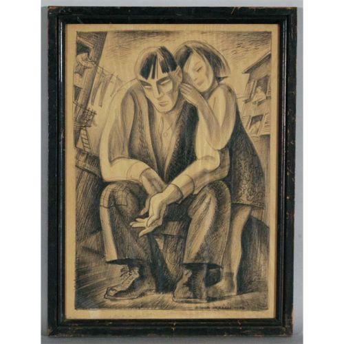 1 ROGER VERNUM Unemployed 21"x 15" pencil on paper signed lower right and dated 1939