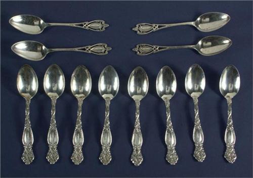 STERLING SILVER: A fine assortment of twelve engraved Sterling Silver spoons, four by Rogers, Lunt 7 Bowlen, eight are unidentified, 5 «'' L, both dating from early to mid 20th century, 7.6 ozt.
