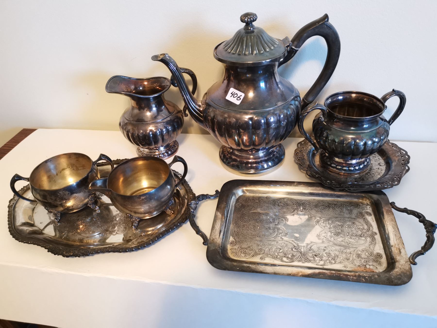 ROGERS TEAPOT CREAM & SUGAR BOWLS OTHER TRAYS