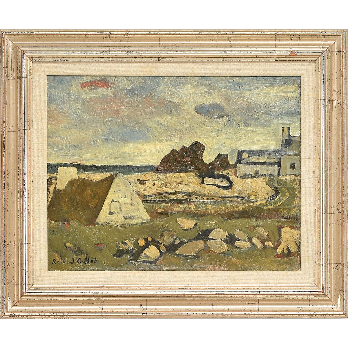 Oil on canvas Housed in a silver gilt frame with linen liner Signed lower left "Roland Oudot" SIZE: 10-1/2" x 13-3/4". Overall: 15-1/4" x 18-1/4". CONDITION: Very good. 9-29125