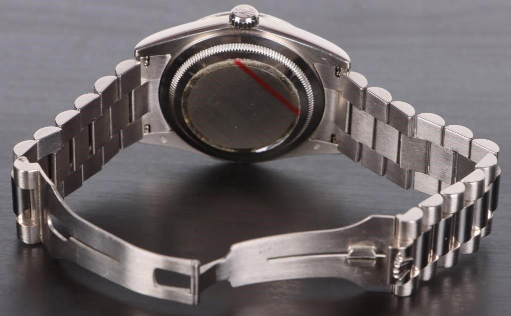 self-winding automatic chronometer movement solid 18K white gold case & president bracelet.