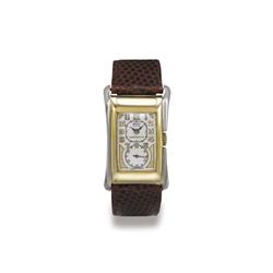 A TWO-TONE GOLD RECTANGULAR DOCTOR'S WRISTWATCH