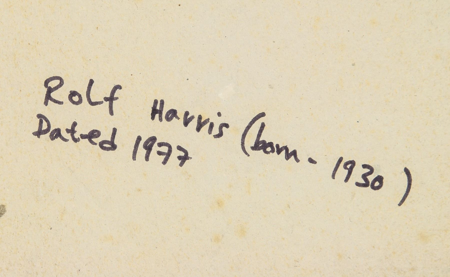 Oil on board portrait of lady. Signed and attr. Rolf Harris (Australia, b. 1930) on lower right corner. Verso written "Rolf Harris (born- 1930) Dated 1977". Harris moved to England in 1952 and became an art student at City and Guilds of London Art School in South London, at the age of 22. In 1953 he found work in television, at the BBC, performing a regular ten-minute cartoon drawing section in a one-hour children's show called Jigsaw, with a puppet called "Fuzz", made and operated on the show by magician Robert Harbin. He went on to illustrate Harbin's Paper Magic programme in 1956. In 1954, Harris was a regular on a BBC Television programme Whirligig, which featured a character called "Willoughby", who sprang to life on a drawing board, but was erased at the end of each episode. PROVENANCE: Private Collection (Manchester, UK)