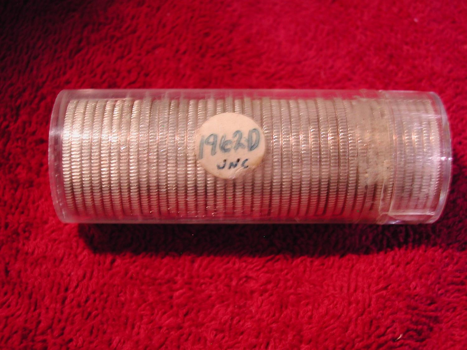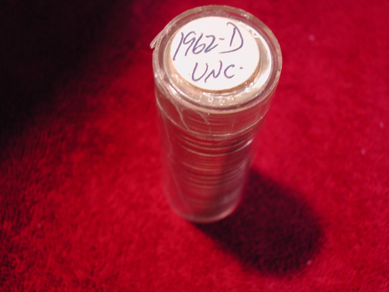 ROLL 1962 D UNC QUARTERS, TAPED CLOSED