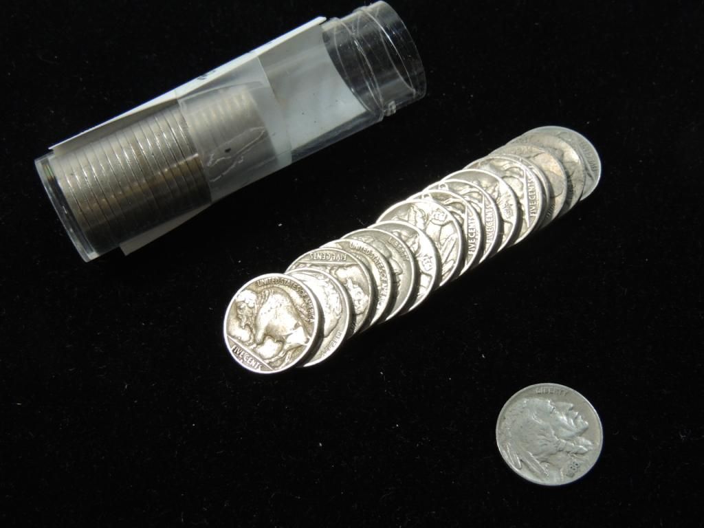 ROLL FULL DATE BUFFALO NICKELS. AS SHOWN. SEE PHOTO FOR MORE DETAILS.