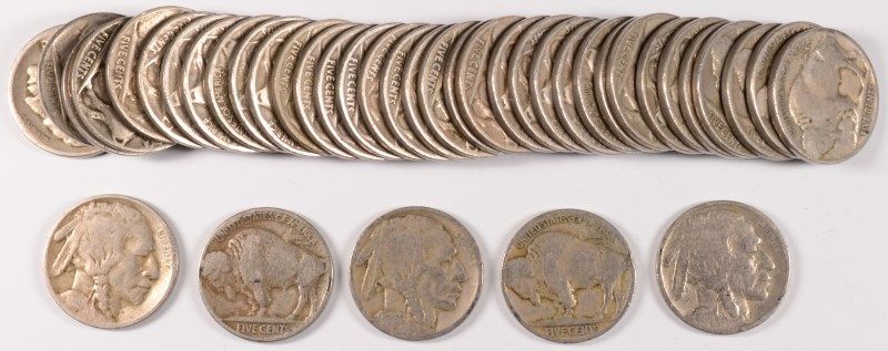 ROLL OF 1919 PARTIAL DATE BUFFALO NICKELS, GOOD-VG, SOME PROBLEMS