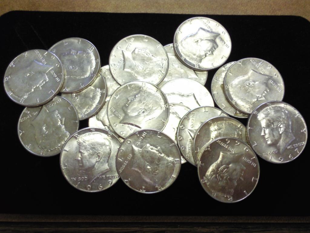 ROLL OF 20 ASSORTED KENNEDY HALF DOLLARS 40%SILVER