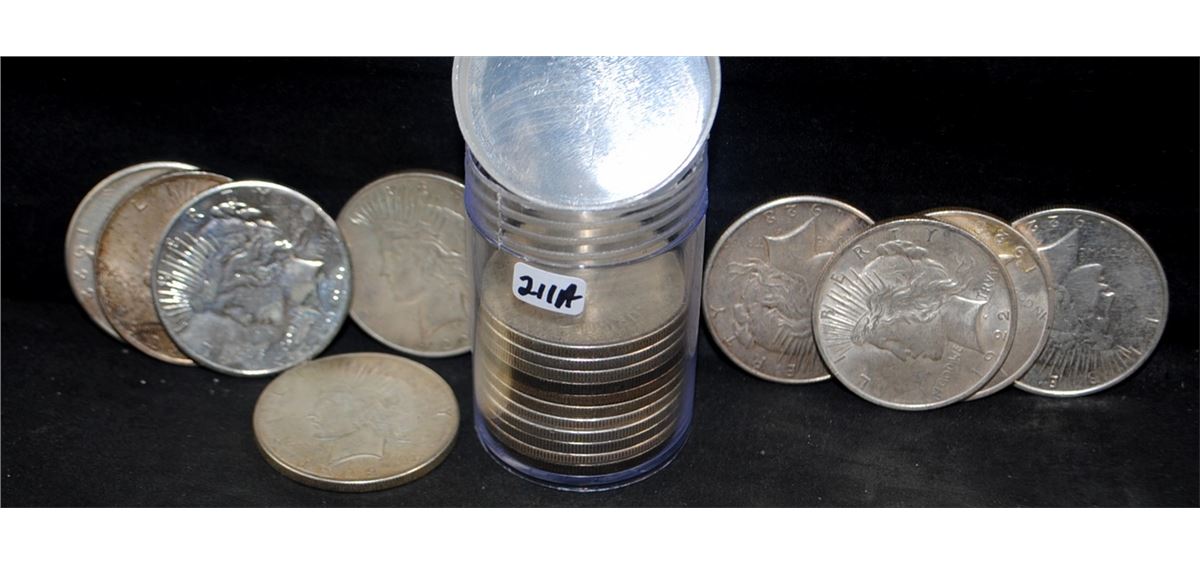 ROLL OF 20 SILVER PEACE DOLLARS FROM SAFE DEPOSIT - MIXED DATES -SOLD PER COIN TIMES 20