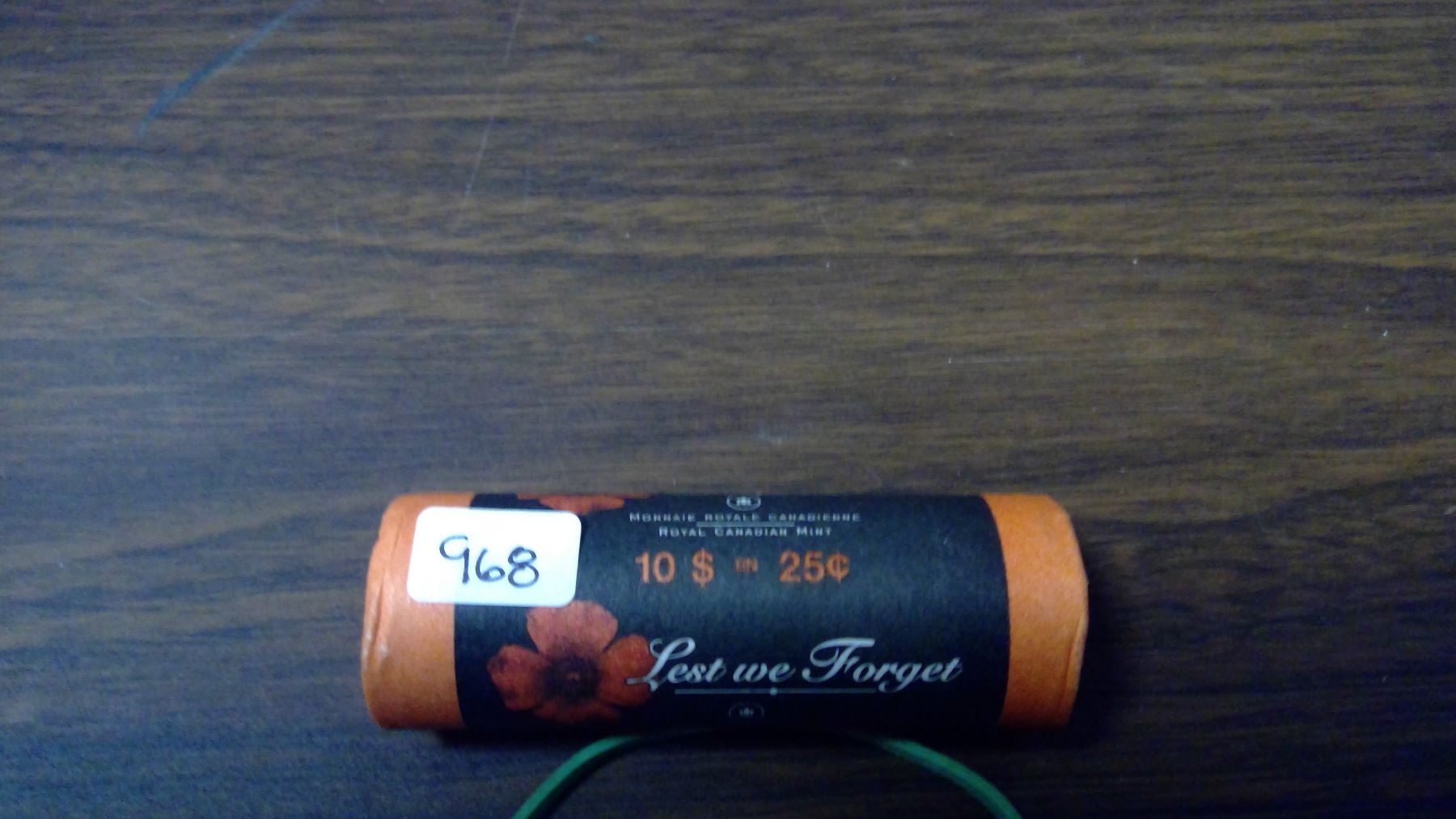 ROLL OF 2004 UNC CANADIAN POPPY 25 CENT COINS