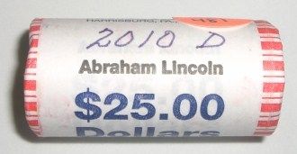 ROLL OF 2010-D PRESIDENT DOLLARS ROLL *UNCIRCULATED-ABRAHAM LINCOLN* $25.00 FACE VALUE!! ROLL CAME OUT OF SAFE!! ***Coin, Currency & All Items Listed in this auction - Grades, Conditions and Values are not Safe Deposit Coins LLC Responsibilty. Grades, Condition and Values are determined by Consigner(s) & Buyers ONLY