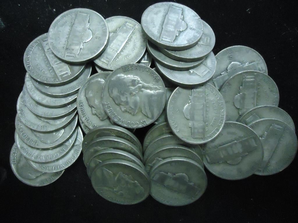 ROLL OF 40-1943-S 35% SILVER JEFFERSON WAR NICKELS