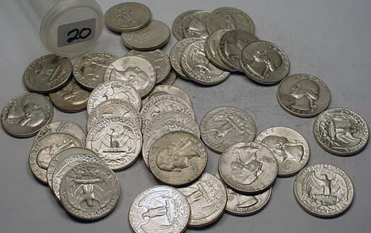 ROLL OF 40 90% SILVER WASHINGTON QUARTERS - 1964 OR EARLIER - UNSEARCHED!!