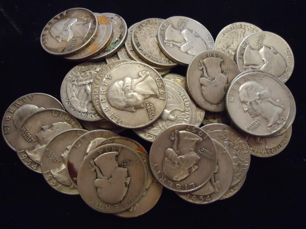 ROLL OF 40 ASSORTED WASHINGTON SILVER QUARTERS