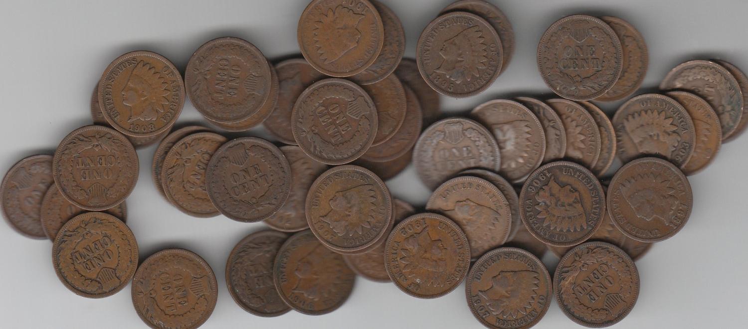 ROLL OF 40 INDIAN HEAD CENTS MIXED DATES
