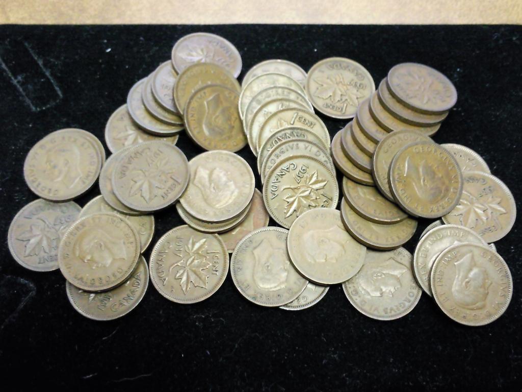 ROLL OF 50-1937 CANADA ONE CENTS