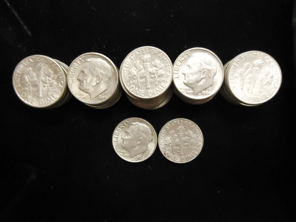 ROLL OF 50-1964-D SILVER ROOSEVELT DIMES