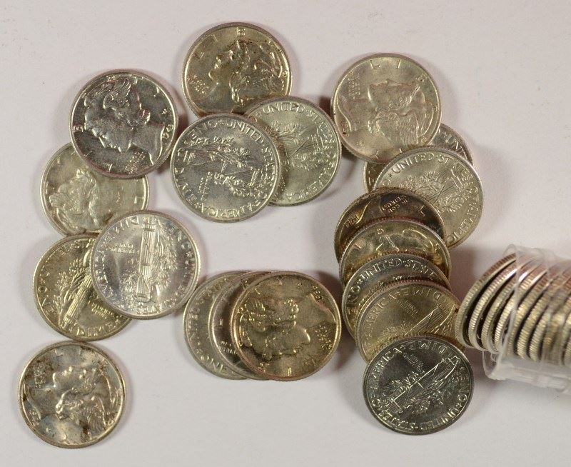 ROLL OF ( 50 ) MERCURY DIMES AU+/UNC./GEM BU 1934-1945 WITH P,D&S COINS