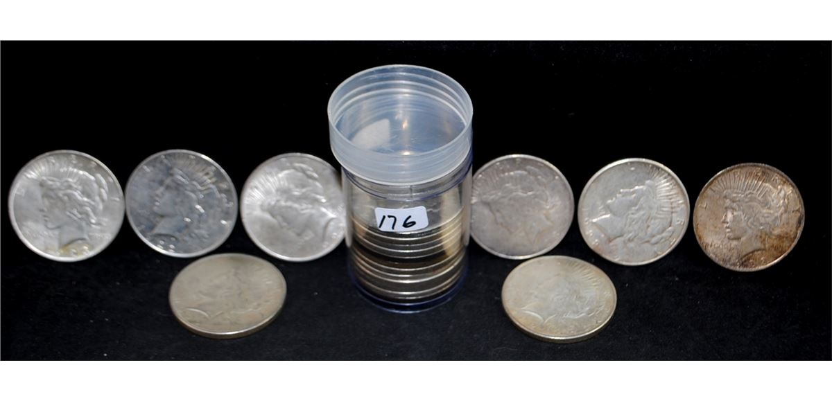 ROLL OF PEACE DOLLARS FROM SAFE DEPOSIT JUST THE WAY THEY CAME FROM SAFE DEPOSIT - MIXED DATES - SOLD PER COIN TIMES 20