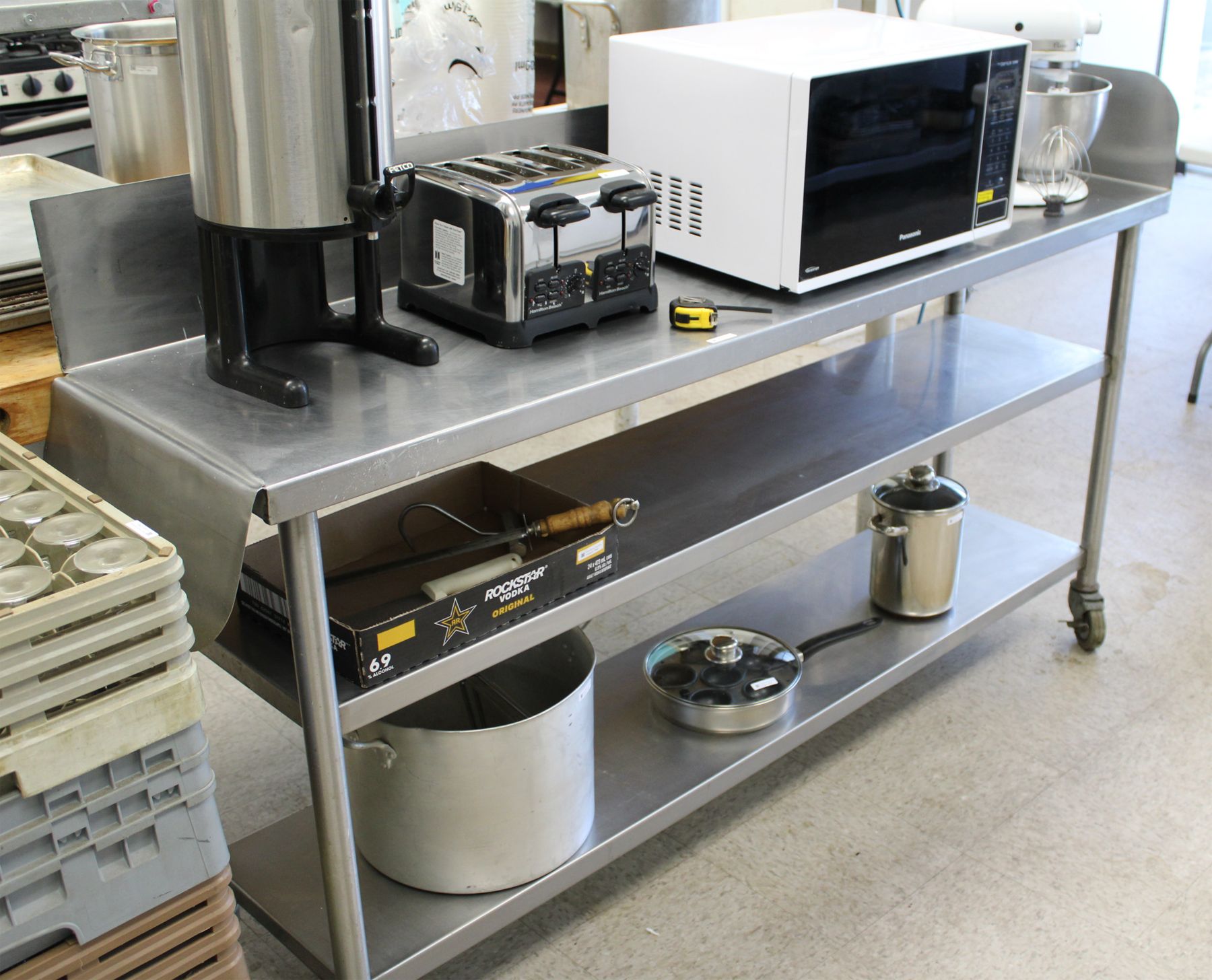 MEASURES APPROX. 6FT X 18" X 3FT ( FLOOR - PREP TOP)ONE SIDE OF BACK SPLASH HAS BEEN ALTERED