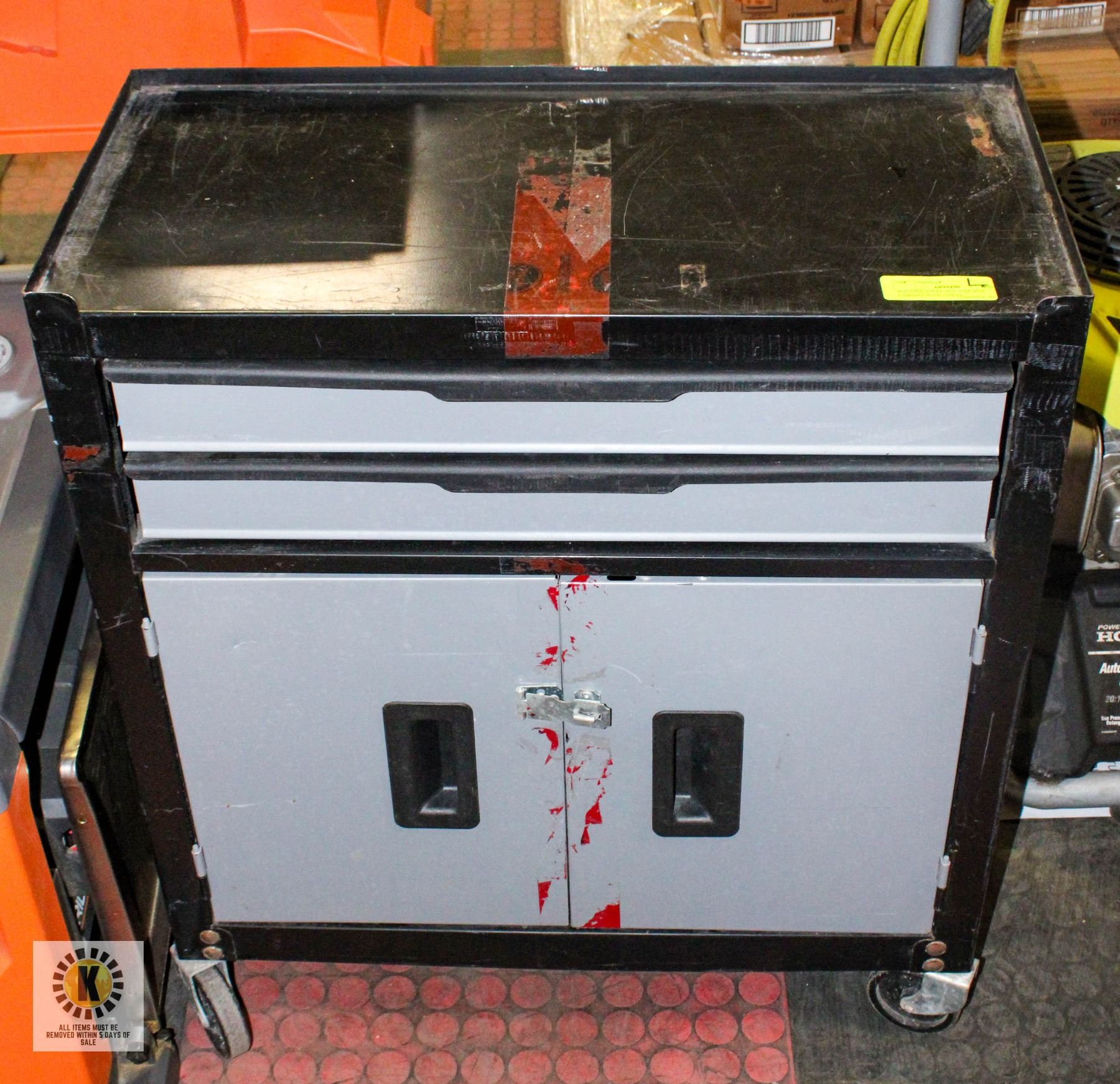 LARGE 2-DOOR CABINET AND 2 EASY-ROLL TOOL DRAWERS, 4-WAY SWIVEL CASTORS (24.25"L X 11.5"W X 27.5"H) **ALL ITEMS MUST BE REMOVED BY 5PM SATURDAY, APRIL 5TH 2025. ALL REMAINING ITEMS WILL BE SUBJECT TO A $6.00 PER DAY STORAGE CHARGE. ANY ITEMS REMAINING AFTER MONDAY, APRIL 21ST 2025 WILL BE CONSIDERED FORFEITED. NO REFUNDS WILL BE ISSUED FOR FORFEITED ITEMS. TO SCHEDULE A PICK UP APPOINTMENT CLICK HERE