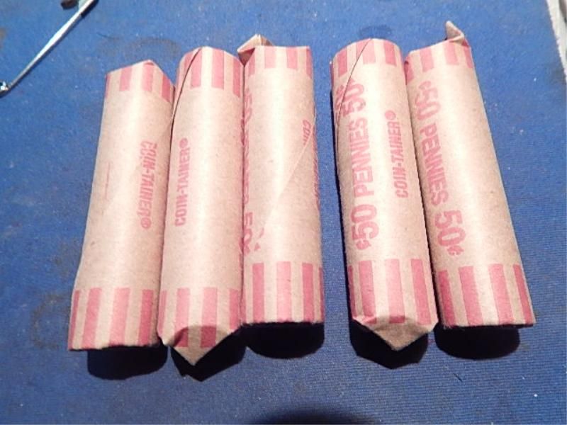 ROLLS OF ASSORTED PENNIES - 5 ROLLS