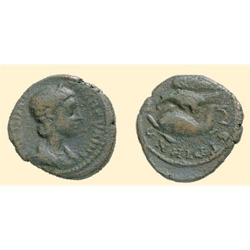 3 Assaria (6.70 g). C<SPAN STYLE=`FONT-SIZE:10.0PT;FONT-FAMILY:SYMBOL;COLOR:#333333`>ABINA-TRANKULINA</SPAN>, diademed and draped bust of Tranquillina right / <SPAN STYLE=`FONT-SIZE:10.0PT;FONT-FAMILY:SYMBOL;COLOR:#333333`>ICTRIHNWN</SPAN>, eagle on dolphin left. AMNG I/1, 529; BMC - ; SNG Stancomb -.